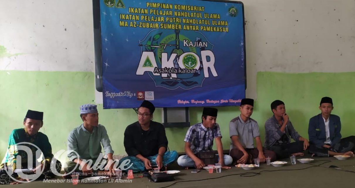PAMEKASAN — Pimpinan Komisariat (PK) Ikatan Pelajar Nahdlatul Ulama (IPNU) dan Ikatan Pelajar Putri Nahdhatul Ulama (IPPNU) Madrasah Aliyah (MA) Az-Zubair Sumber Anyar, Larangan Tokol, Tlanakan, Pamekasan, menggelar kajian Asakola Kaloar (Akor) di Aula Gedung MA Az-Zubair, Jumat (13/03/2020) sore.
