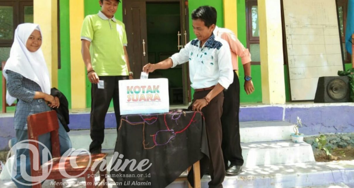 PAMEKASAN — SMA Maarif 1 Pamekasan gelar pemilihan Ketua dan Wakil Ketua OSIS periode 2018-2019 di halaman sekolah, Jl. Raya Simpang Tiga Terrak No. 21 Tlanakan Pamekasan, Rabu (31/18/2018).