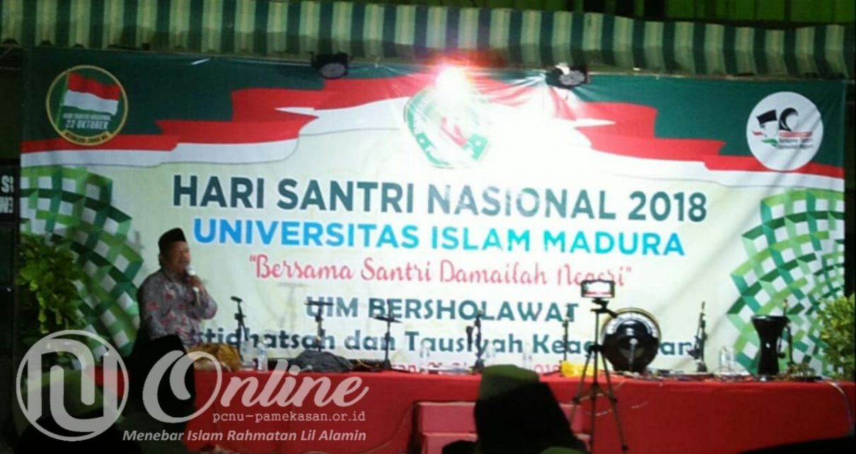 PAMEKASAN — Dalam rangka memperingati Hari Santri Nasional (HSN) 2018, Universitas Islam Madura (UIM) menggelar Shalawat dan Istighatsah bersama, Ahad malam (21/10/2018) di halaman kampus, Desa Bettet, Kecamatan Kota, Pamekasan.